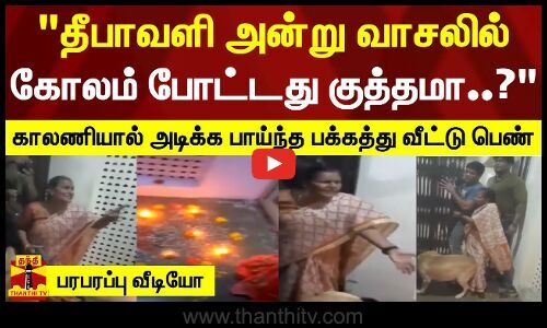 "வாசலில் கோலம் போட்டது குத்தமா..?" - காலணியால் அடிக்க பாய்ந்த பக்கத்து வீட்டு பெண் - பரபரப்பு வீடியோ