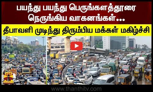 பயந்து பயந்து பெருங்களத்தூரை நெருங்கிய வாகனங்கள்...தீபாவளி முடிந்து திரும்பிய மக்கள் மகிழ்ச்சி