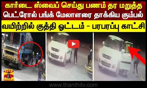 கார்டை ஸ்வைப் செய்து பணம் தர மறுத்த பெட்ரோல் பங்க் மேலாளரை தாக்கிய கும்பல்.. வயிற்றில் குத்தி ஓட்டம்-பரபரப்பு காட்சி