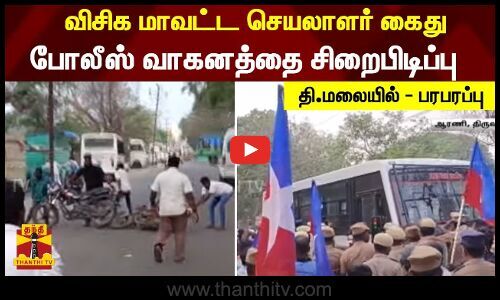 விசிக மாவட்ட செயலாளர் கைது - போலீஸ் வாகனம் சிறைபிடிப்பு - தி.மலையில் - பரபரப்பு