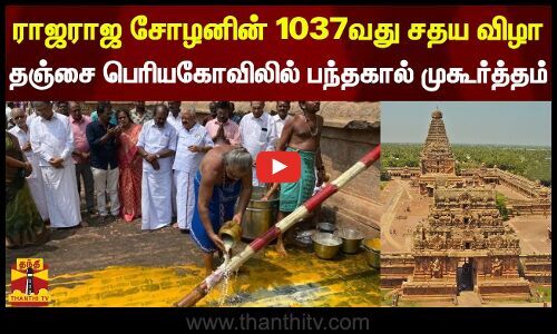ராஜராஜ சோழனின் 1037வது சதய விழா - தஞ்சை பெரியகோவிலில் பந்தகால் முகூர்த்தம்