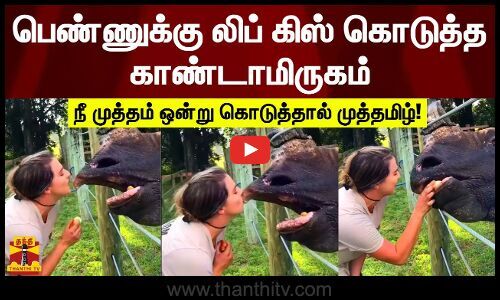 உணவளித்த இளம்பெண் ஒருவருக்கு காண்டாமிருகம் உதட்டு முத்தம் கொடுக்கும் வீடியோ இணையத்தில் அதிகம் பகிரப்பட்டு வருகின்றது...