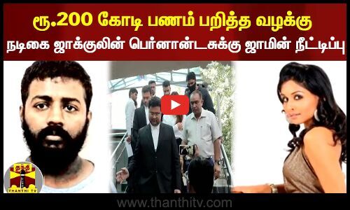 இதை ஏற்ற நீதிமன்றம் 50 ஆயிரம் ரூபாய் பணைய தொகை செலுத்த உத்தரவிட்டு ஜாக்குலின் ஃபெர்னாண்டஸுக்கு இடைக்கால ஜாமின் வழங்கி கடந்த மாதம் 26-ஆம் தேதி உத்தரவிட்டது.
