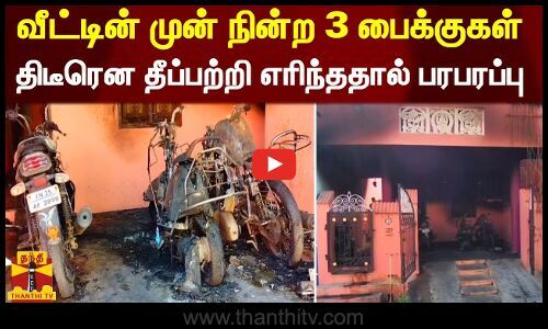 வீட்டின் முன் நின்ற 3 பைக்குகள் - திடீரென தீப்பற்றி எரிந்ததால் பரபரப்பு