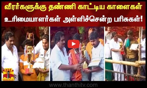 இதேபோல, ஜல்லிக்கட்டில் காளையர்களுக்கு தண்ணி காட்டி, அவர்களிடம் சிக்காமல் வெற்றி பெற்ற காளைகளுக்கும் பரிசுகள் வழங்கப்பட்டன. இதற்கான பரிசுகளை காளைகளின் உரிமையாளர்கள் பெற்றுக்கொண்டனர். சிறப்பாக விளையாடிய காளைக்கான முதல் பரிசாக, இருசக்கர வாகனத்தை, காத்தனேந்தலை சேர்ந்த காமேஷ் என்பவர் பெற்றுக் கொண்டார்.