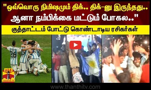 "ஒவ்வொரு நிமிஷமும் திக் திக்-னு இருந்தது... ஆனால் மெஸ்ஸி மேல உள்ள நம்பிக்கை மட்டும் போகல" - குத்தாட்டம் போட்டு கொண்டாடிய ரசிகர்கள்