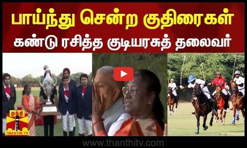 பாய்ந்து சென்ற குதிரைகள் - கண்டு ரசித்த குடியரசுத் தலைவர் திரவுபதி முர்மு President Droupadi Murmu
