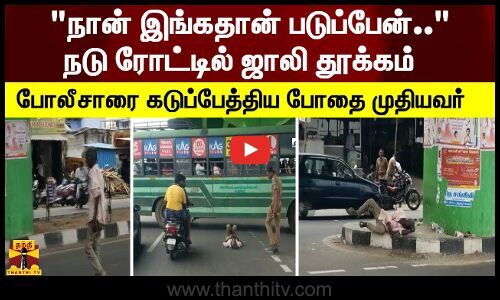 "நான் இங்கதான் படுப்பேன்.."நடு ரோட்டில் ஜாலி தூக்கம் - போலீசாரை கடுப்பேத்திய போதை முதியவர்