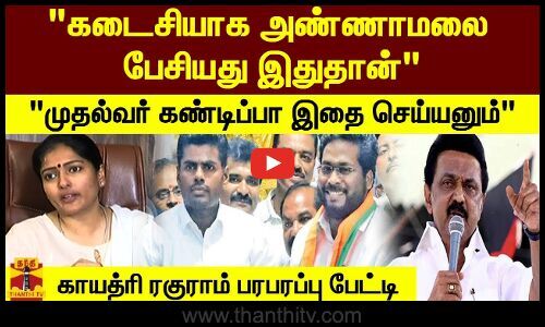 "கடைசியாக அண்ணாமலை பேசியது இதுதான்" "முதல்வர் கண்டிப்பா இதை செய்யனும்" -காயத்ரி ரகுராம் பேட்டி