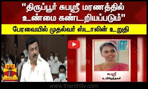 திருப்பூரை சேர்ந்த சுபஸ்ரீ மரணத்தில் உண்மை கண்டறியப்படும் என சட்டப்பேரவையில் முதலமைச்சர் ஸ்டாலின் தெரிவித்துள்ளார்..