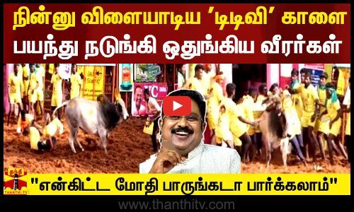 நின்னு விளையாடிய 'டிடிவி' காளை.. பயந்து நடுங்கி ஒதுங்கிய வீரர்கள்
