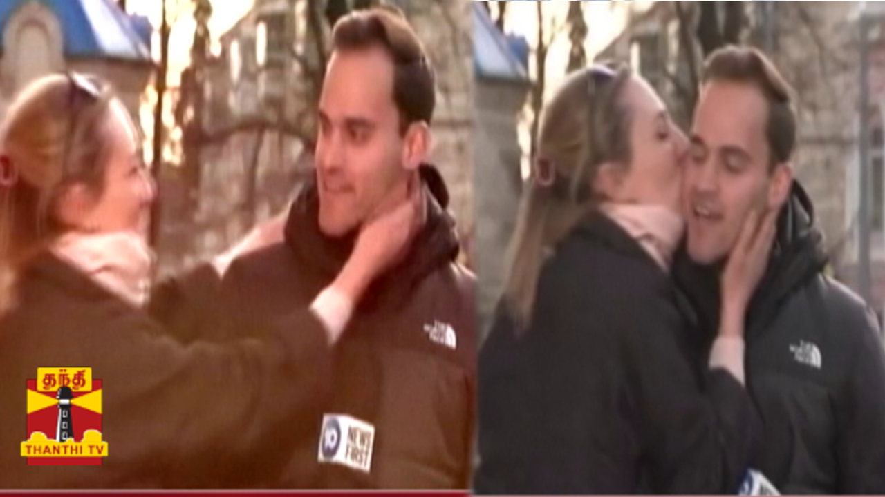 - ஐரோப்பிய நாடான மால்டோவாவில் நிருபர் ஒருவர் சாலையில் நின்று தொலைக்காட்சிக்காக செய்தி வழங்கிக் கொண்டிருந்த போது, ஒரு இளம்பெண் திடீரென குறுக்கிட்டு, நிருபரின் கன்னத்தில் முத்தமிட்ட காட்சி வெளியாகியுள்ளது...