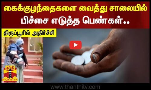 கைக்குழந்தைகளை வைத்து சாலையில் பிச்சை எடுத்த பெண்கள் - திருப்பூரில் அதிர்ச்சி | tirupur | thanthi tv