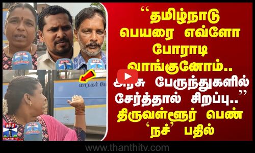 அரசுப் பேருந்து போக்குவரத்து கழகம் என்பதற்கு பதிலாக, தமிழ்நாடு அரசு பேருந்து போக்குவரத்துக் கழகம் என்பதை தாறு தான் இருக்க வேண்டும் என ஒருதரப்பினர் எதிர்ப்பு தெரிவித்து வரும் நிலையில், அது குறித்து மக்கள் குரல் பகுதியில், திருவள்ளுர் மாவட்டம் மக்கள் தெரிவித்த கருத்துக்களைப் பார்க்கலாம்...