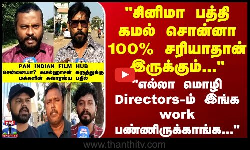 PAN INDIAN FILM MAKING HUB சென்னை தான் என்று, நடிகர் கமலஹாசன் கருத்து தெரிவித்திருக்கும் நிலையில், அது குறித்து மக்கள் குரல் பகுதியில் திருநெல்வேலி மாவட்டம் திசையன்விளை மக்கள் தெரிவித்த கருத்துக்களைப் பார்க்கலாம்...