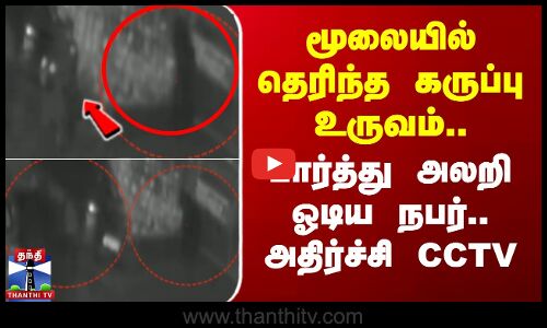 மூலையில் தெரிந்த கருப்பு உருவம்.. பார்த்து அலறி ஓடிய நபர் - அதிர்ச்சி CCTV