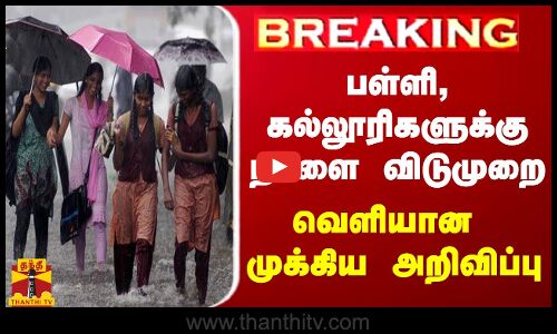 #BREAKING || பள்ளி, கல்லூரிகளுக்கு நாளை விடுமுறை - வெளியான முக்கிய அறிவிப்பு
