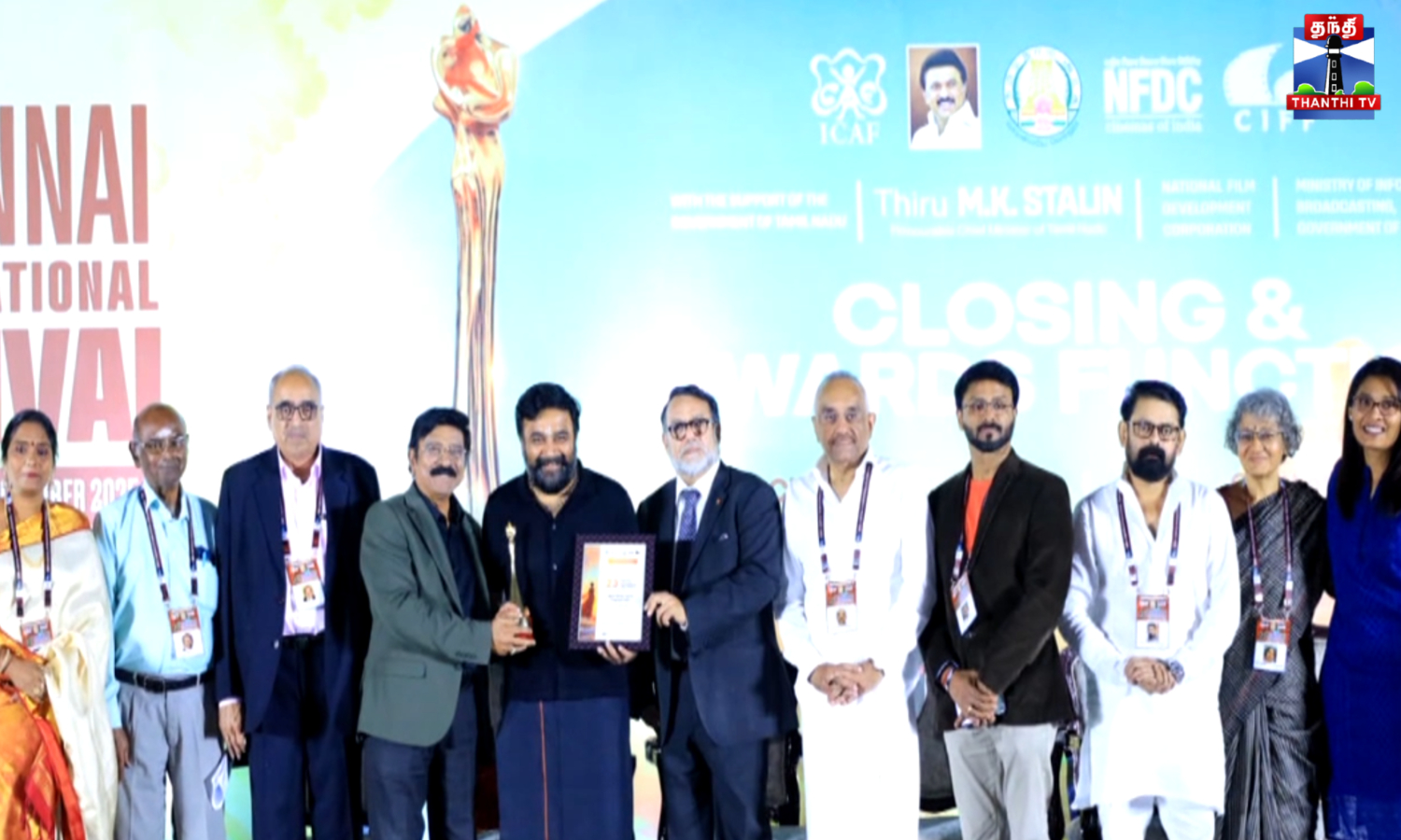 சென்னை சர்வதேச திரைப்பட விழாவுல "டூரிஸ்ட் ஃபேமிலி" படத்திற்காக நடிகர் சசிகுமாருக்கு சிறந்த நடிகருக்கான விருது வழங்கி இருக்காங்க..."காதல் என்பது பொது உடைமை" படத்துக்காக "லிஜோ மோல் ஜோஸ்" சிறந்த நடிகைக்கான விருதை பெற்றாங்க...சிறந்த தமிழ் படமாக "பறந்து போ", "டூரிஸ்ட் ஃபேமிலி" படங்கள் தேர்வு செய்யப்பட்டது...மெட்ராஸ் மேட்னி படத்துக்காக நடிகர் காளி வெங்கட்டுக்கு சிறப்பு ஜூரி விருதும், வேம்பு படத்திற்காக நடிகை ஷீலா ராஜ்குமாருக்கு ஸ்பெஷல் மென்ஷன் விருதும் கொடுக்கப்பட்டது.. மொத்தம் 18 பிரிவுகளில் விருதுகள் அறிவிக்கப்பட்டுச்சு...
