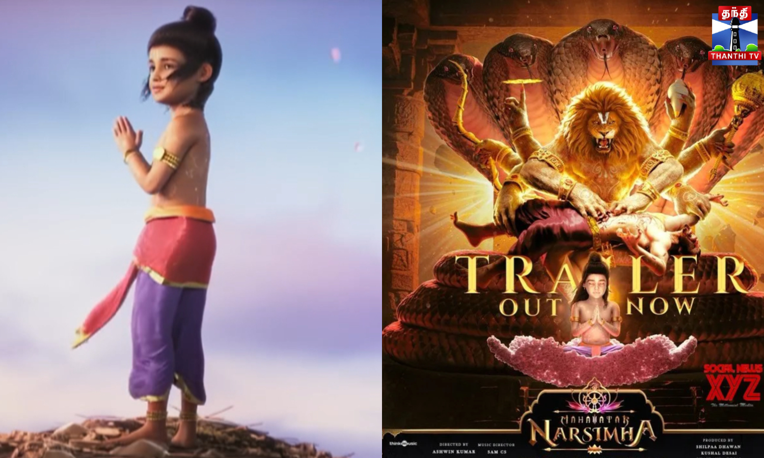 பெரும் எதிர்பார்ப்புகளுக்கு இடையில் "மஹாவதார் நரசிம்மா"திரைப்படத்தின் டிரெய்லர் வெளியானது. ஹோம்பாலே பிலிம்ஸ், க்ளீம் புரடக்ஷன்ஸ் இணைந்து வழங்கும் இந்த படம், இந்திய இதிகாசத்தை அடிப்படையாகக் கொண்டு, நரசிம்ம அவதாரத்தின் வரலாறு திரைப்படமாக்கப்பட்டுள்ளது. விசுவல் எஃபெக்ட்ஸ், பின்னணி இசை, 3D தொழில்நுட்பத்துடன் 5 இந்திய மொழிகளில் உருவாகியுள்ள இந்த படம், ஜூலை 25ம் தேதி திரையரங்குகளில் வெளியாகிறது.
