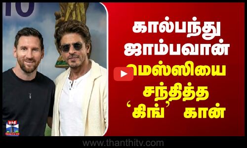 கொல்கத்தாவிற்கு சென்ற மெஸ்ஸியை பாலிவுட் உச்ச நட்சத்திரமான ஷாருக்கான் நேரில் சந்தித்து அன்பை பகிர்ந்தார். மெஸ்ஸி சிலை திறப்பு நிகழ்ச்சியில் பங்கேற்ற ஹாருக்கான், கால்பந்து வீரர்கள் மெஸ்ஸி, சுவாரஸ் உள்ளிட்டோருடன் புகைப்படம் எடுத்து மகிழ்ந்தார்.