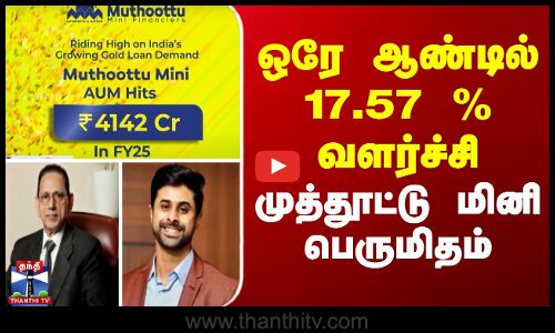 முத்தூட்டு மினி பைனான்ஸ் நிறுவனம், 2025 நிதியாண்டில் 4,141 புள்ளி 60 கோடி ரூபாய் சொத்துகளை கையாள்வதாகவும், இது அதற்கு முந்தைய நிதியாண்டை ஒப்பிடும் போது 17 புள்ளி 57 சதவீதம் அதிகம் என்றும் முத்தூட்டு நிறுவனத்தின் நிர்வாக இயக்குனர் மேத்யூ முத்தூட்டு தெரிவித்துள்ளார். இதே நேரத்தில் நிறுவனத்தின் வருமாய் 815 புள்ளி 15 கோடி ரூபாயாக உயர்ந்து, 94 புள்ளி 18 கோடி ரூபாய் நிகர லாபத்தை எட்டியுள்ளதாகவும் தெரிவிக்கப்பட்டுள்ளது. முத்தூட்டு மினியின் வளர்ச்சி குறித்து பேசியுள்ள அந்நிறுவனத்தின் தலைமை செயல் அதிகாரியான மத்தாய், இந்தியாவில் 948 கிளைகளுடன், தொழில்நுட்ப வளர்ச்சிக்கேற்ப டிஜிட்டல் சேவைகள் மற்றும் கிளை விரிவாக்கத்தின் மூலம் நிறுவனம் 25 லட்சத்துக்கும் மேற்பட்ட வாடிக்கையாளர்களை ஈர்த்துள்ளதாக கூறினார்.