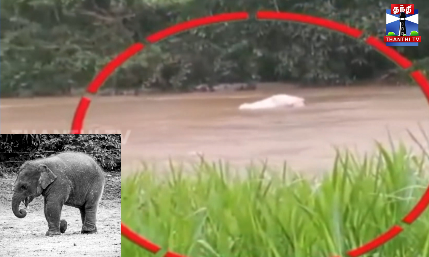 வெள்ளப்பெருக்கில் இழுத்துச் செல்லப்பட்ட குட்டி யானை