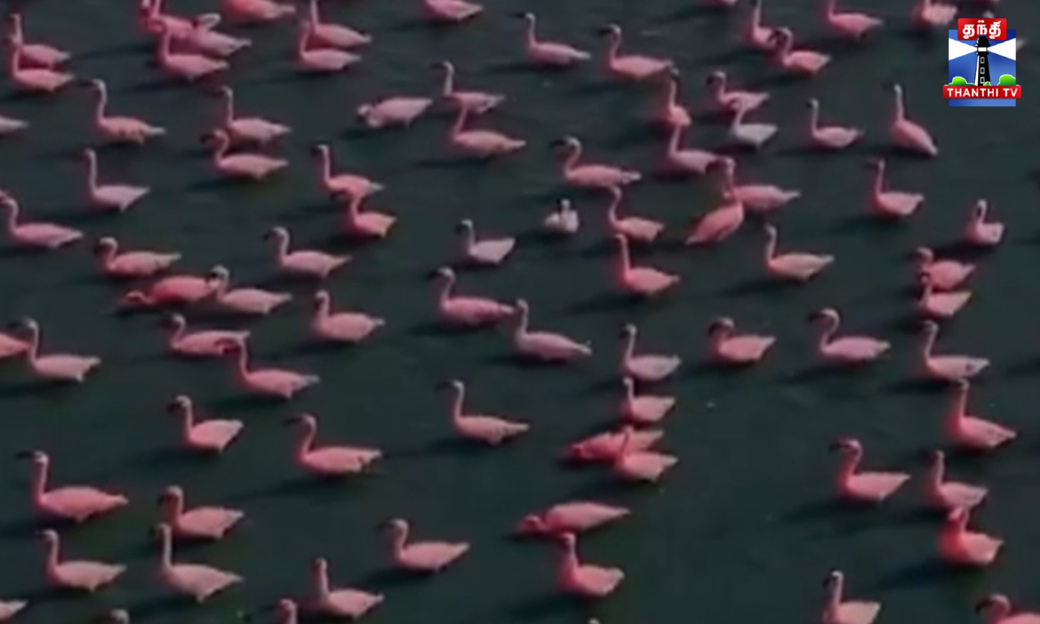 ஃப்ளமிங்கோ பறவைகளால் நிரம்பிய ஏரி...ரம்மியமான காட்சி