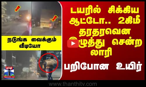 ஆட்டோவை 2 கி.மீ. தரதரவென இழுத்துச் சென்ற லாரி.. நடுங்க வைக்கும் வீடியோ