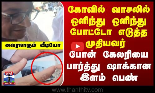 கோவில் வாசலில் போட்டோ எடுத்த முதியவர் போன் கேலரியை பார்த்து ஷாக்கான இளம் பெண்