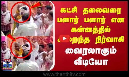 உத்தரப்பிரதேச மாநிலம் ஜான்பூரில் சுஹேல்தேவ் ஸ்வாபிமான் கட்சி தேசிய தலைவர் மகேந்திர ராஜ்பருக்கு மாலை அணிவித்த கட்சி நிர்வாகி ஒருவர், அவரை சரமாரியாக கன்னத்தில் அறைந்த சம்பவம் அதிர்ச்சியை ஏற்படுத்தியது. ஆஷாபூர் கிராமத்தில் நடைபெற்ற நிகழ்ச்சியில், கட்சித் தொண்டரான பிரிஜேஷ் ராஜ்பர் என்பவர், முதலில் மகேந்திர ராஜ்பருக்கு மாலை அணிவித்தார். தொடர்ந்து, சில வினாடிகளில், சரமாரியாக கன்னத்தில் அறைந்ததால் கட்சியினர் மற்றும் பொதுமக்கள் குழப்பம் அடைந்தனர்.
