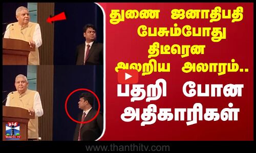Jagdeep Dhankhar | துணை ஜனாதிபதி பேசும்போது திடீரென அலறிய அலாரம்.. பதறி போன அதிகாரிகள்