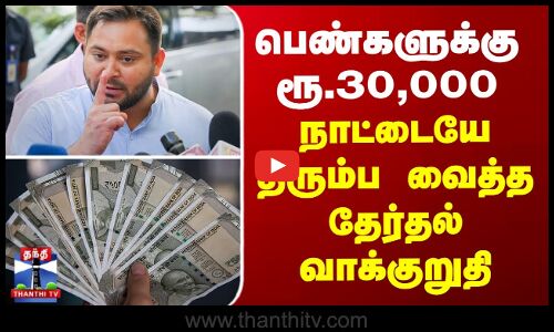 பீகாரில் ஆட்சியமைத்தால், மகர சங்கராந்தி அன்று பெண்களுக்கு தலா 30 ஆயிரம் ரூபாய் வழங்கப்படும் என எதிர்க்கட்சிகளின் முதலமைச்சர் வேட்பாளர் தேஜஸ்வி யாதவ் அறிவித்துள்ளார். பீகார் சட்டப்பேரவைத் தேர்தலின் முதல்கட்ட வாக்குப் பதிவையொட்டி அவர் இறுதி கட்ட பிரசாரத்தில் ஈடுபட்டார். அப்போது இந்த வாக்குறுதியை அறிவித்த தேஜஸ்வி, தாங்கள் அறிவித்த உரிமைத் தொகை திட்டத்தின்படி ஒரே தவணையாக வரும் மகர சங்கராந்தியின்போது இந்தத் தொகை விடுவிக்கப்படும் என கூறினார்.