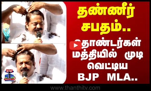 BJP | Water Issue | தண்ணீர் சபதம்.. தொண்டர்கள் மத்தியில் முடி வெட்டிய BJP MLA