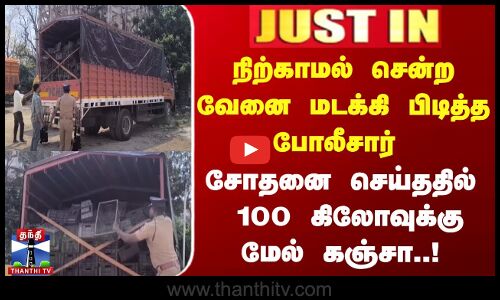 Just In | நிற்காமல் சென்ற வேனை மடக்கி பிடித்த போலீசார் | சோதனை செய்ததில் 100 கிலோவுக்கு மேல் கஞ்சா