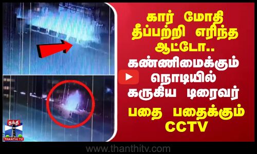 கார் மோதி தீப்பற்றி எரிந்த ஆட்டோ..கண்ணிமைக்கும் நொடியில் கருகிய டிரைவர் - பதை பதைக்கும் CCTV