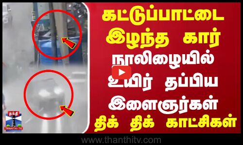 கட்டுப்பாட்டை இழந்த கார்.. நூலிழையில் உயிர் தப்பிய இளைஞர்கள்.. திக் திக் காட்சிகள்