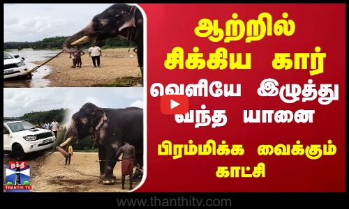 ஆற்றில் சிக்கிய கார்...வெளியே இழுத்து வந்த யானை.. பிரம்மிக்க வைக்கும் காட்சி