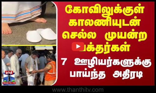 கோவிலுக்குள் காலணியுடன் செல்ல முயன்ற பக்தர்கள் 7 ஊழியர்களுக்கு பாய்ந்த அதிரடி