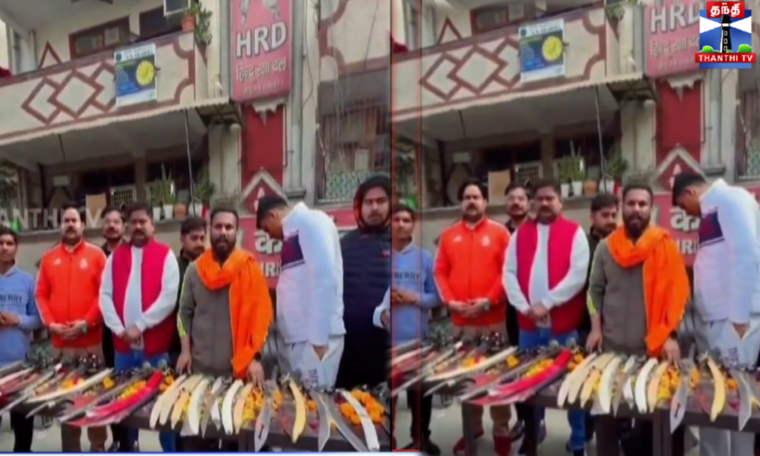 உத்தரப் பிரதேச மாநிலம் ஷாலிமார் கார்டன் பகுதியில் உள்ள ஹிந்துக்களுக்கு கத்தி உள்ளிட்ட ஆயுதங்களை விநியோகம் செய்த ஹிந்து அமைப்பினரால் பரபரப்பு ஏற்பட்டது. அண்டை நாடான வங்கதேசத்தில் ஹிந்துக்களுக்கு எதிராக தாக்குதல் நடத்தப்படுவதை சுட்டிக்காட்டி ஆயுதங்கள் வழங்கப்படுவதாக வீடியோ பதிவிடப்பட்டிருக்கிறது. இதையடுத்து, காவல்துறையினர் வழக்குப்பதிவு செய்து 10 பேரை கைது செய்துள்ளனர்.