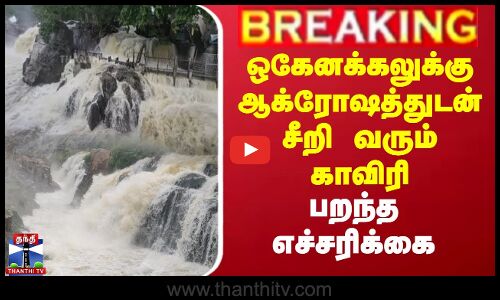 ஒகேனக்கல் - நீர்வரத்து 57,000 கன அடியாக உயர்வு/ஒகேனக்கல் காவிரி ஆற்றில் தொடர் வெள்ளப்பெருக்கு - நீர்வரத்து 57,000 கனஅடியாக உயர்வு/ஒகேனக்கல் காவிரி ஆற்றுக்கு நீர்வரத்து 50,000 கன அடியாக இருந்த நிலையில், இன்று காலை 57,000 கனஅடியாக அதிகரிப்பு/கர்நாடகா அணைகளில் இருந்து 76,000 கன அடி நீர் திறந்துவிடப்பட்டுள்ளதால், தமிழகத்திற்கு நீர்வரத்து உயர வாய்ப்பு/நீர்வரத்து உயர்ந்து வருவதால், முன்னெச்சரிக்கை நடவடிக்கையாக, ஒகேனக்கல் காவிரி ஆற்றில் குளிக்கவும், பரிசல் இயக்கவும் தடை நீட்டிப்பு///