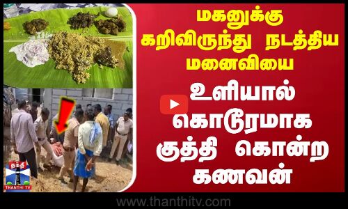 மகனுக்கு கறிவிருந்து நடத்திய மனைவியை உளியால் கொடூரமாக குத்தி கொன்ற கணவன்