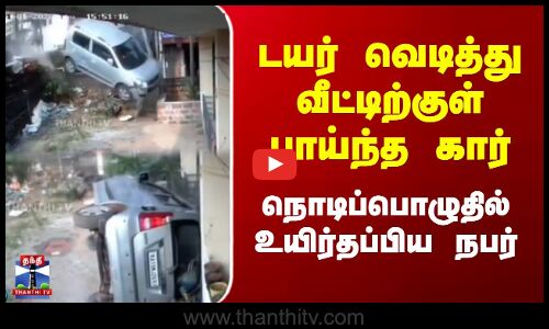 Karnataka | Car | டயர் வெடித்து வீட்டிற்குள் பாய்ந்த கார் - நொடிப்பொழுதில் உயிர்தப்பிய நபர்