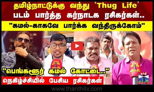 தமிழ்நாட்டுக்கு வந்து `Thug Life' படம் பார்த்த கர்நாடக ரசிகர்கள்..