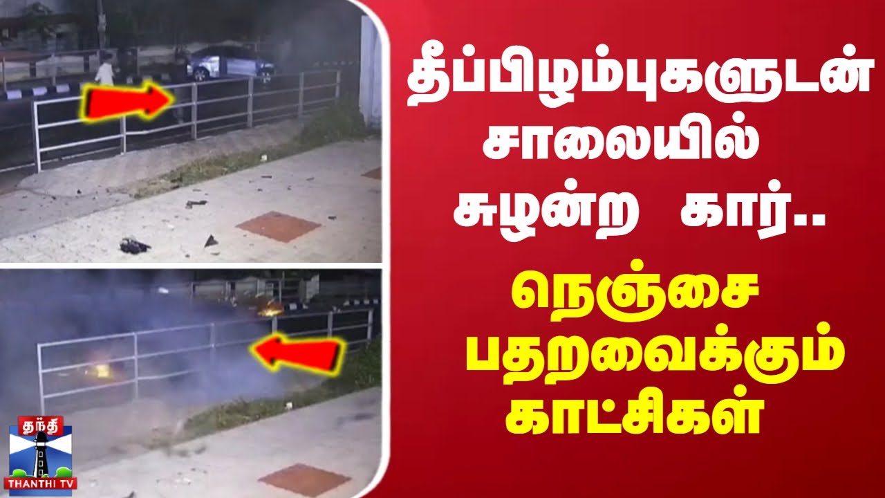 தீப்பிழம்புகளுடன் சாலையில் சுழன்ற கார்... நெஞ்சை பதறவைக்கும் காட்சிகள்