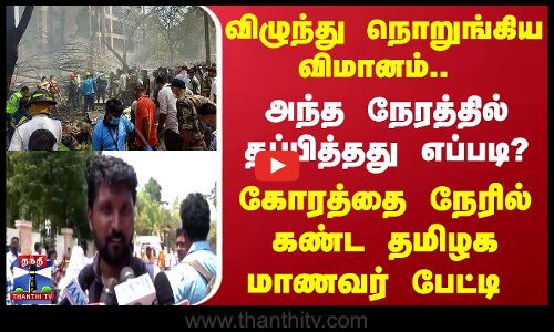 Plane crash | விமான விபத்து - சம்பவ இடத்தில் இருந்த தமிழக மருத்துவ மாணவர் பேட்டி