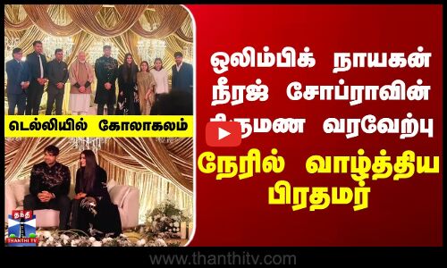 ஒலிம்பிக்கில் ஈட்டி எறிதல் போட்டியில் தங்கப் பதக்கம் வென்ற தடகள வீரர் நீரஜ் சோப்ரா மற்றும் அவரது மனைவி ஹிமானி மோர் சோப்ராவின் திருமண வரவேற்பு நிகழ்வு டெல்லியில் உள்ள லீலா அரண்மனையில் நடைபெற்றது. புதுமண தம்பதியை வாழ்த்த பிரதமர் மோடி வருகைதந்த போது உற்சாகம் பொங்கியது..