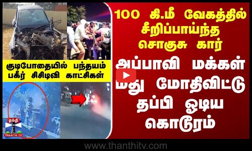 மதுபோதையில் கார் ஓட்டி விபத்து ஏற்படுத்திய தொழிலதிபரால் ஒரு உயிர்பலி, 16 பேர் படுகாயமடைந்துள்ளனர். நொடிப்பொழுதில் நடந்த விபத்தின் சிசிடிவி காட்சிகள் நெஞ்சை பதை பதைக்க வைக்கின்றன...
