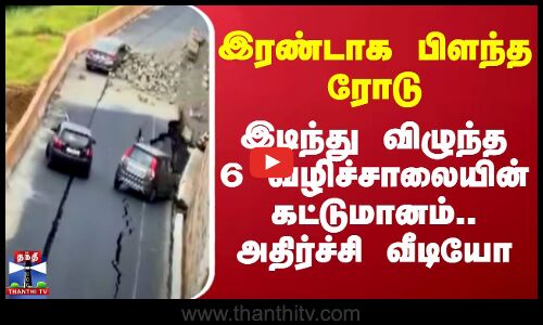 இரண்டாக பிளந்த ரோடு - இடிந்து விழுந்த 6 வழிச்சாலையின் கட்டுமானம்.. அதிர்ச்சி வீடியோ