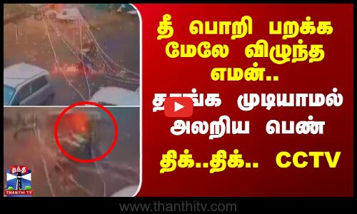 தீ பொறி பறக்க மேலே விழுந்த எமன்.. தாங்க முடியாமல் அலறிய பெண் - திக்..திக்..CCTV