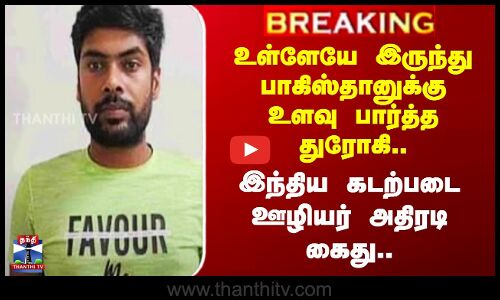 பாகிஸ்தானுக்கு உளவு பார்த்த இந்திய கடற்படை தலைமையகத்தில் பணியாற்றி வரும் ஊழியர் கைது.